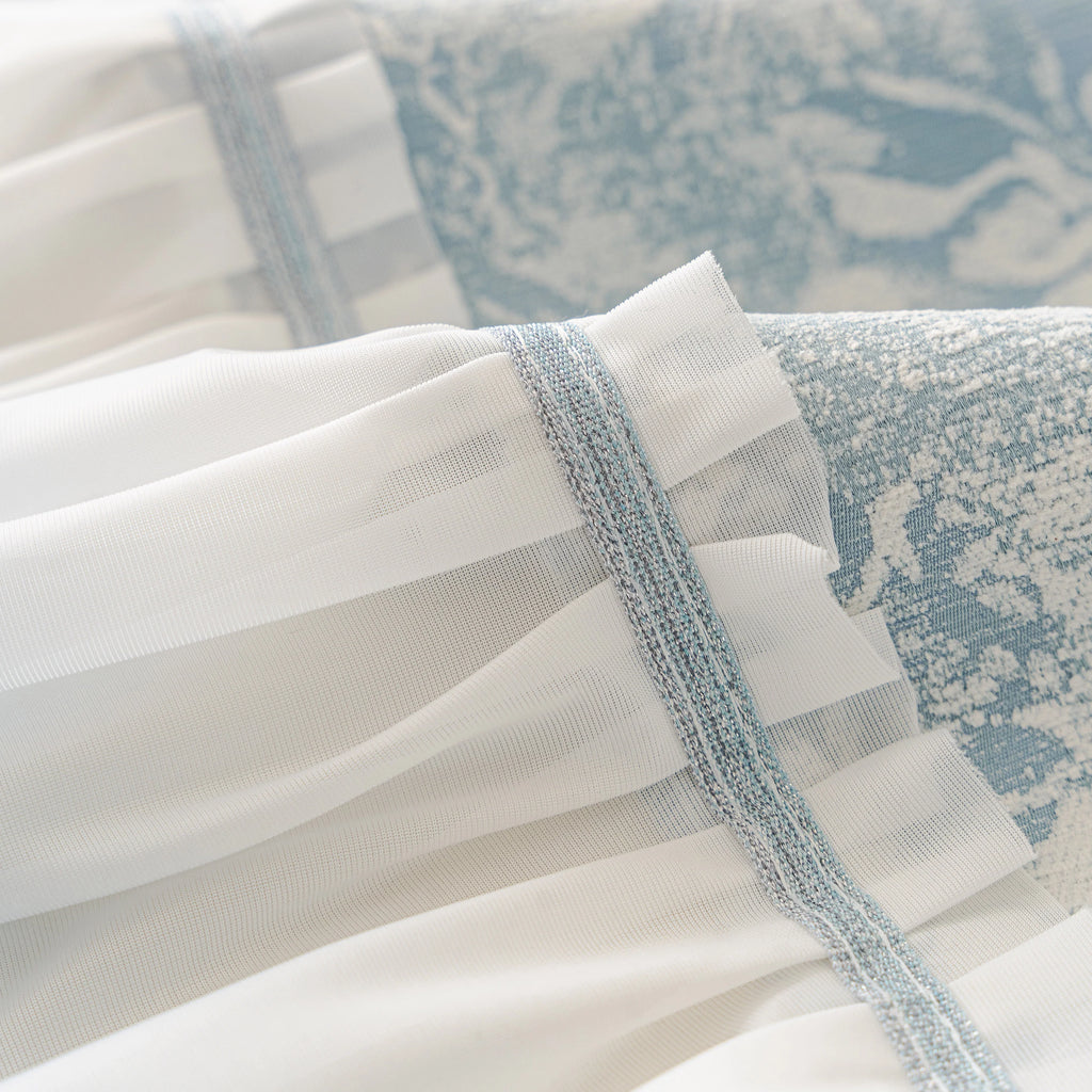 Su estampa elegante fue pensada para integrarse a distintos estilos de decoración: desde el clásico hasta el contemporáneo. Los tonos neutros aportan equilibrio visual, mientras la caída natural del tejido genera un efecto de suavidad y orden que invita a relajarse.
