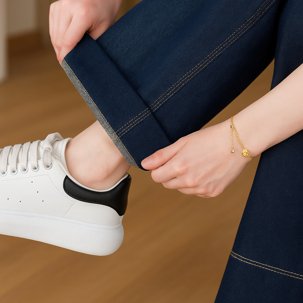 Denim Premium: textura firme pero flexible, con un brillo sutil que realza cada curva.